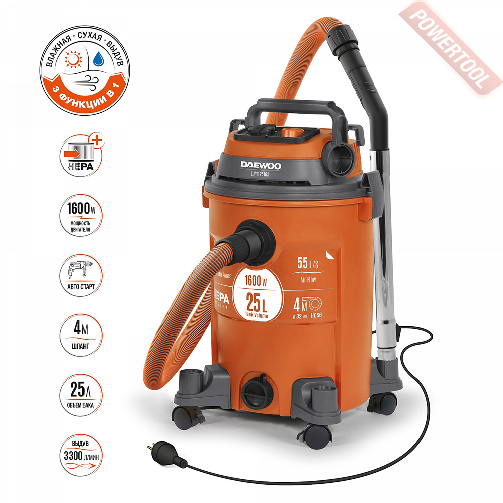 - 21В Li-ion универсальная батарея. Мощная литий-ионная аккумуляторная батарея высокой емкости обеспечивает автономную работу с производительностью сетевого пылесоса. Идеально подходит для других аккумуляторных инструментов DAEWOO линейки 21В.