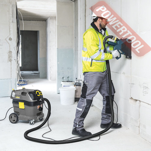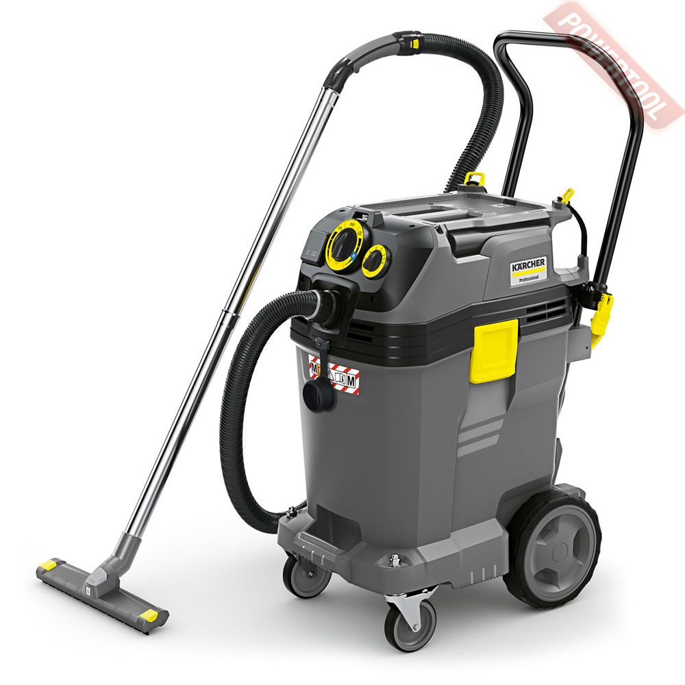 Пылесос строительный KARCHER NT 50/1 Tact Te M - большой и мобильный пылесос влажной и сухой уборки с 50-литровым мусоросборником и регулируемой рукояткой, разработанный для сбора очень больших объемов вредной мелкой пыли класса M. Благодаря новой полностью автоматической системе очистки фильтра, наш пылесос влажной и сухой уборки NT 50/1 Tact Te M собирает мелкую пыль в таких количествах, которые ранее не были достижимы при условии гарантированного длительного сохранения эффективности фильтрации в 99.9%. Устройство использует электронику с датчиками для обеспечения оптимальной очистки фильтра во всех случаях и тем самым способствует сохранению постоянства высокой силы всасывания. Вместе с большим, прочным 50-литровым контейнером с металическими колесами и регулируемой рукояткой, пылесос может справляться не только с большими объемами вредной мелкой пыли класса M, но также и мелким мусором и жидкостями. NT 50/1 Tact Te M отличается розеткой для электроинструмента с автоматическим включением, также как и полностью антистатическим исполнением включающим электропроводные аксессуары, что идеально для удаления пыли непосредственно в момент её формирования при работе с электроинструментом. Пыль лежащая на полу или оборудовании может быть надежно и эффективно собрана благодаря использованию разработанных заново аксессуаров, включающих 4 метровый всасывающий шланг, трубки из нержавеющей стали и широкую насадку для пола. Все аксессуары могут надежно храниться на корпусе устройства благодаря продуманной системе хранения.