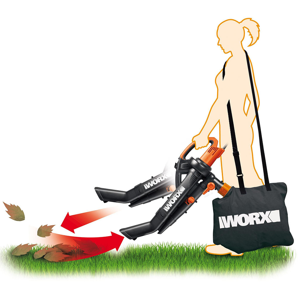 <strong>Воздуходувка пылесос садовая электрическая WORX WG500E</strong> - это универсальный садовый инструмент для уборки опавшей листвы, скошенной травы, садового мусора на садовых участков, тротуарах, детских и спортивных площадок. По сравнению с бензиновыми моделями отличается небольшим весов и отсутствием вредных выхлопов. Правильное применение данного устройства: в режиме воздуходува собрать в мусор в кучу, переключить в режим пылесоса и собрать мусор. Компактные размеры, высокая производительность, хорошая маневренность, безопасность, простота использования и невысокая стоимость делают данную воздуходувку очень востребованной среди садоводов. Имеет зубчатый нос для облегчения доступа по стенам.