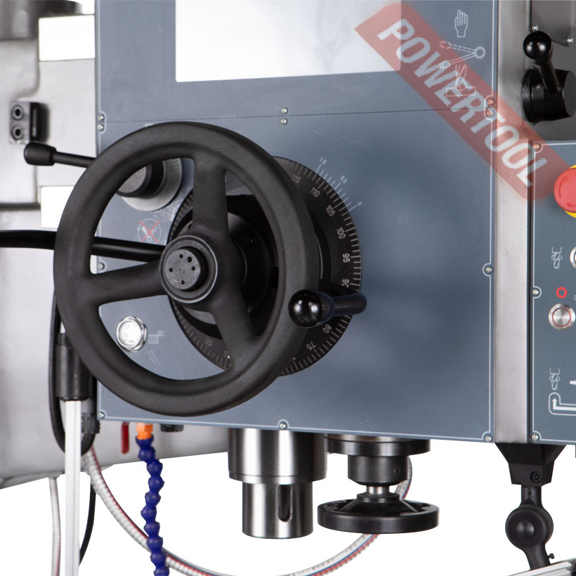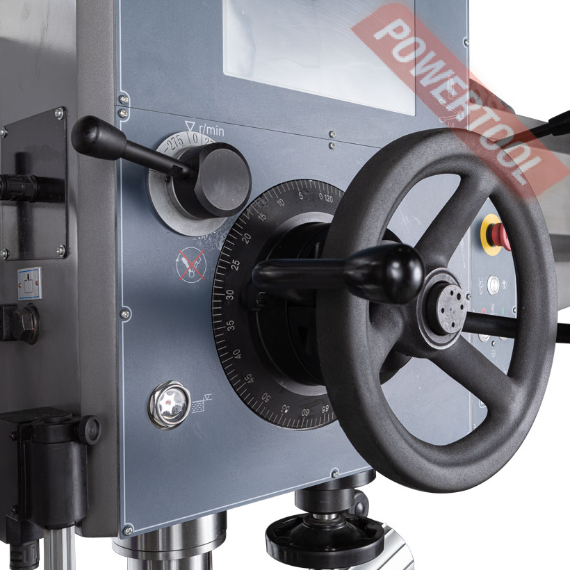 Станок имеет функцию автоматического нарезания резьбы (опционально): после нарезания резьбы шпиндель автоматически переключается в режим обратного вращения (реверса). Возможно предварительно установить глубину сверления и нарезания резьбы, точно контролировать процесс обработки, текущее значение отображается на дисплее.