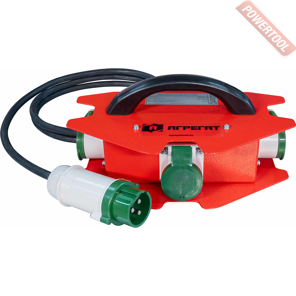 Разветвитель 42В АГРЕГАТ на три розетки используется для подключения глубинных вибраторов, и прочего высокочастотного электрооборудования, к преобразователю частоты. Суммарная возможная токовая нагрузка определяется мощностью преобразователя частоты, но не должна быть более 32 А.