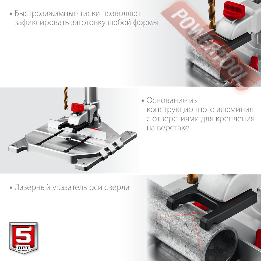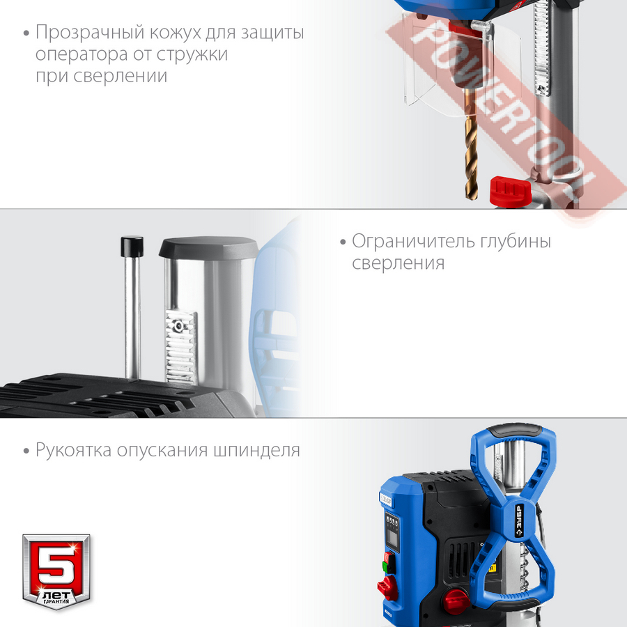 - Прозрачный кожух для защиты оператора от стружки при сверлении.