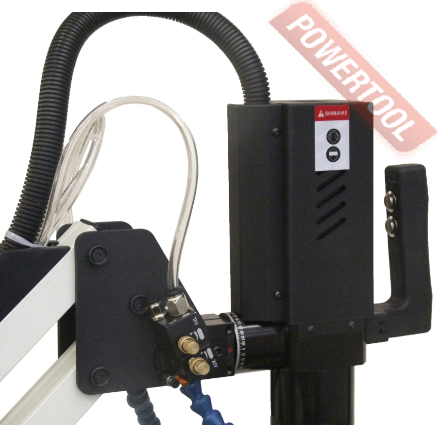 Резьбонарезной манипулятор STALEX MR-DS16/1 подходит для быстрого и качественного нарезания резьбы в отверстиях диаметром от М3 до М16. Он предназначен для работы с различными материалами, такими как сталь, чугун, цветные металлы и пластики. Манипулятор использует американскую технологию GOSYNC, при которой станок оснащён синхронным сервоприводом и планетарным редуктором. Такой привод обеспечивает мощное и стабильное резьбонарезание даже при интенсивном использовании.