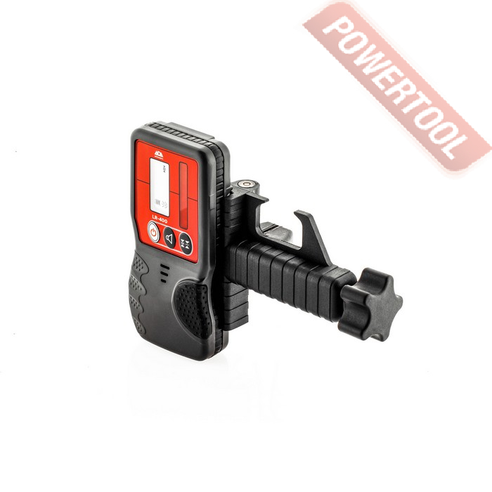 • Режим работы с приемником. Для работы на больших расстояния используется приемник лазерного луча который входит в комплект. Закрепив его на рейке можно производить измерения на территории диаметром до 400 метров