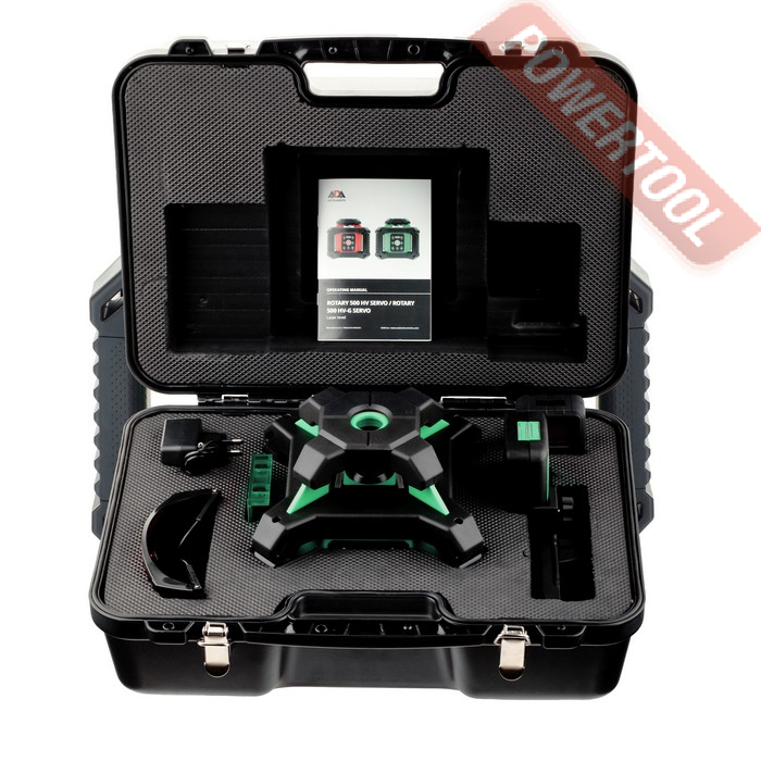 Лазерный нивелир ADA Rotary 500 HV-G Servo с зеленым лазерным лучом оборудованный электронным компенсатором на сервоприводах. За счет такой конструкции и принципа самовыравнивания повышаются точность прибора - +/- 0,1мм/м и диапазон компенсации прибора до +/- 5 градусов. Это способствует более быстрой и точной установке прибора в заданной точке.