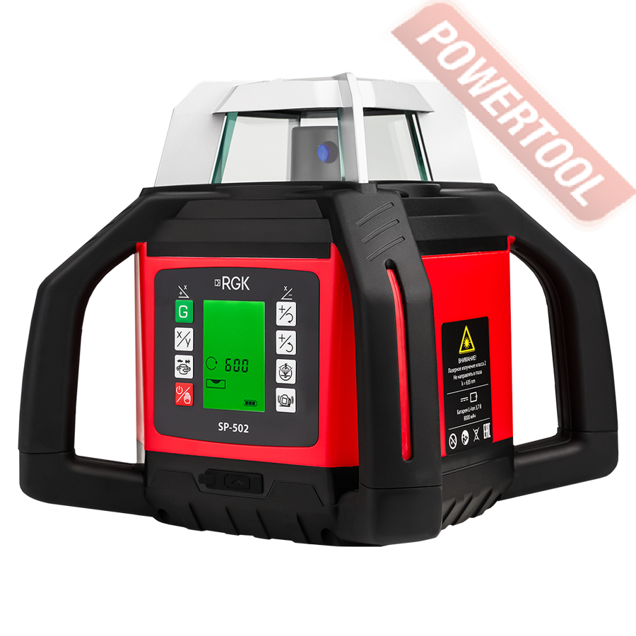 Ротационный лазерный нивелир RGK SP-502 позволяет выполнять выравнивание и определять разницу высот на расстоянии до 500 метров с точность +/-1 мм/10 м. Главное преимущество этой модели - возможность установки наклона по двум осям в диапазоне +/-10 процентов. При этом угол наклона лазерной плоскости можно удобно задать на экране вплоть до до сотой доли процента. Эта возможность чаще всего применяется для организации грамотного водоотведения, земляных работах, обустройстве рамп и различных ландшафтных решений.