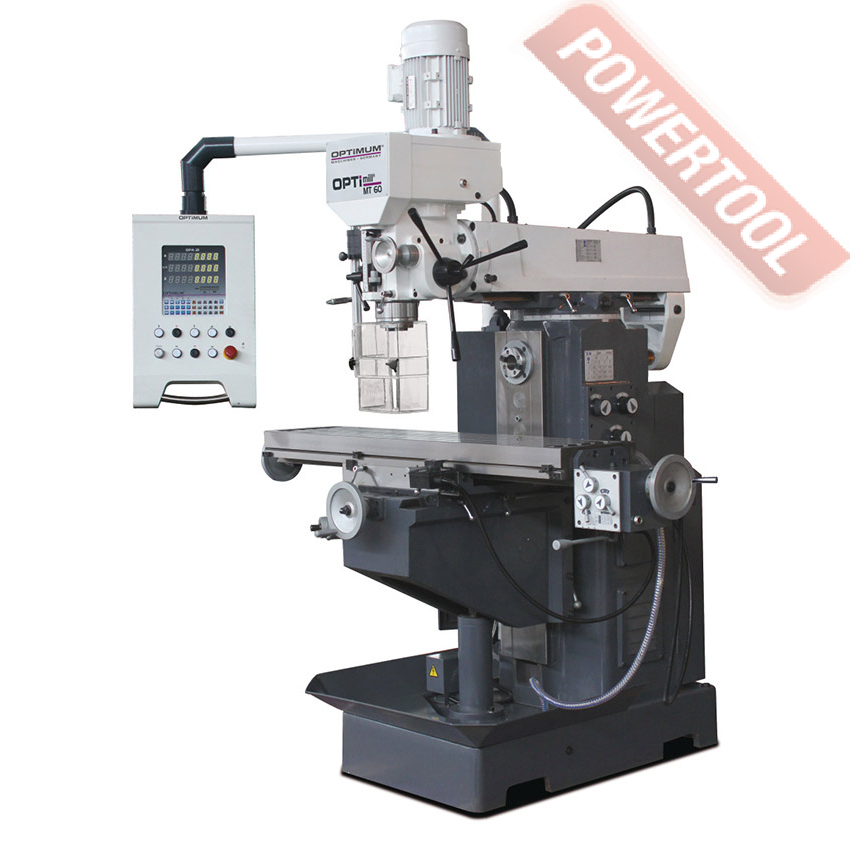 Широкоуниверсальный фрезерный станок по металлу OPTIMUM MT 60 для горизонтальных и вертикальных фрезерных работ. С цифровым 3-осевым индикатором положения DPA 21.