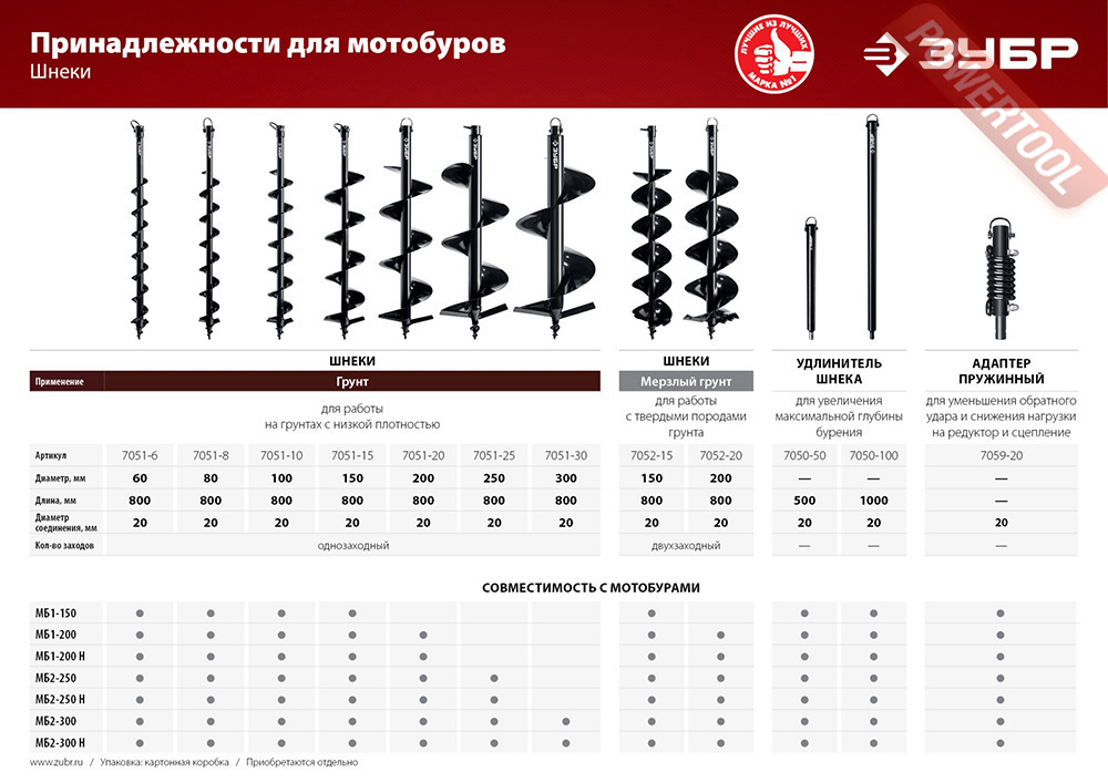 Шнек мотобура для земли 60х800 мм ЗУБР арт.7051-6