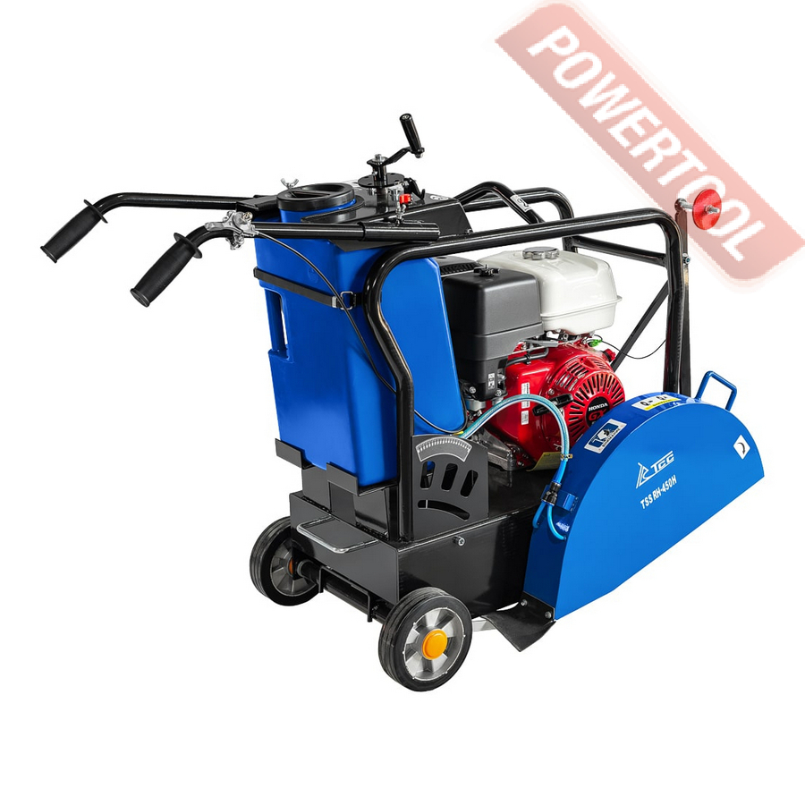 Швонарезчик бензиновый ТСС TSS RH-450H c оригинальным бензиновым двигателем Honda. Применяется для работы с дисками диаметром 300-450 мм, оснащен баком для воды. В комплектацию входит визирное колесо, рычаг газа, руководство по эксплуатации, свечной ключ, ремень. Алмазный диск в комплектацию не входит.