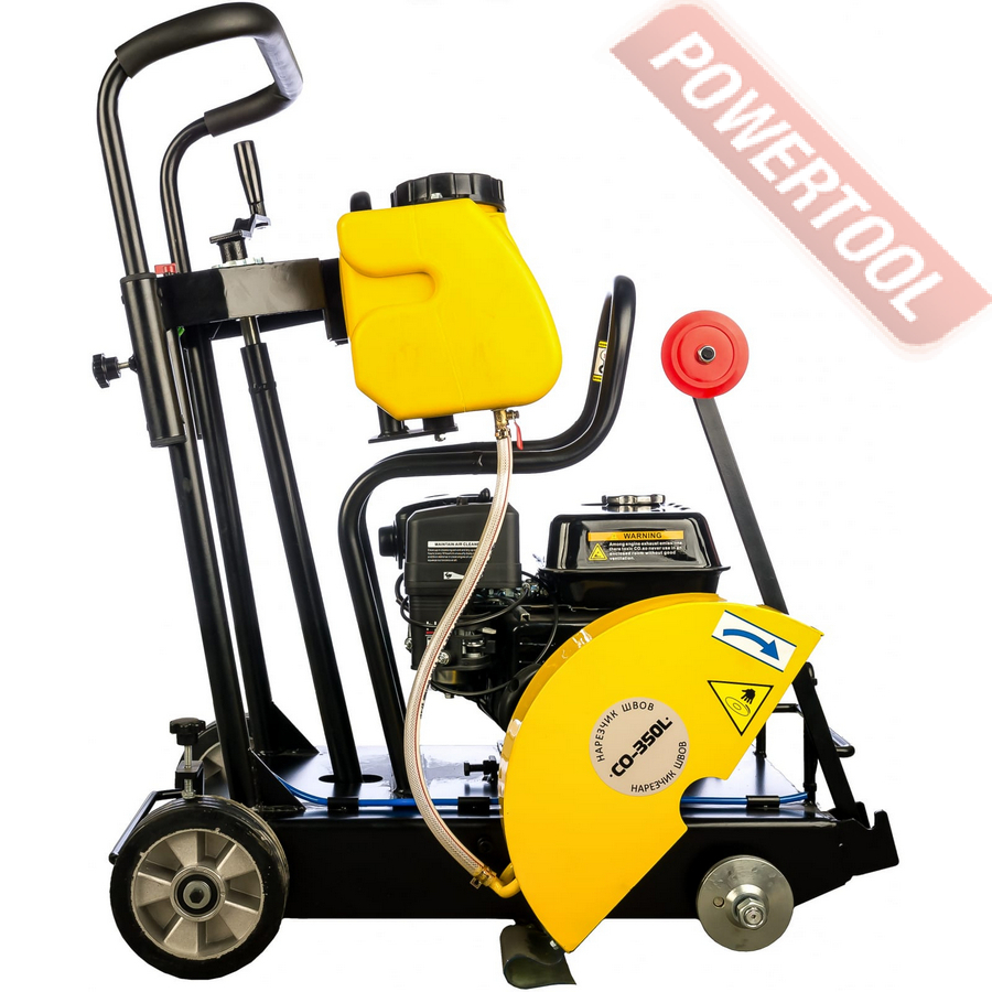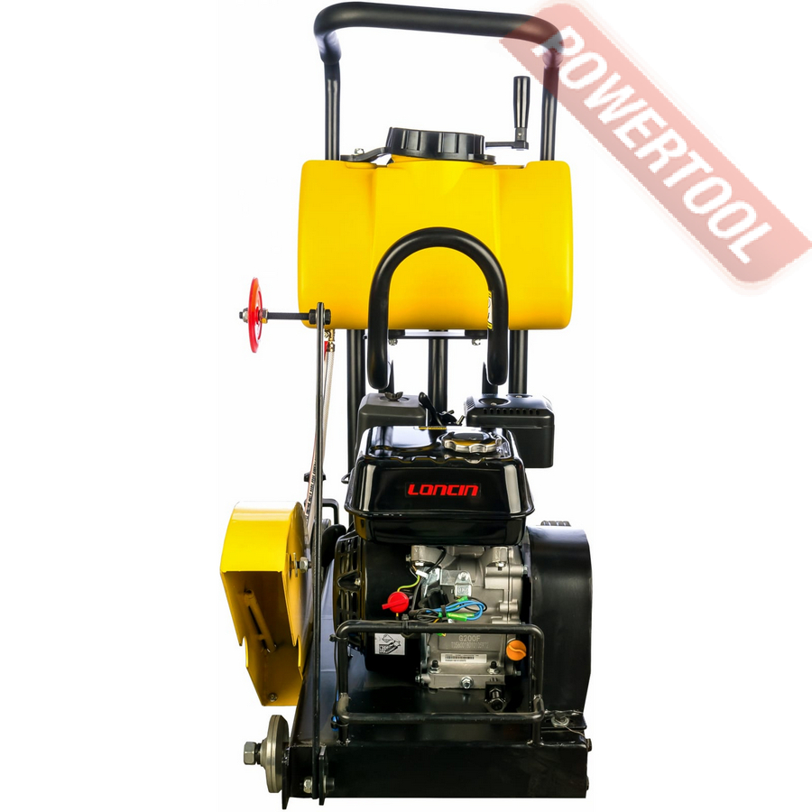 Оборудование оснащено баком для воды. Подача жидкости в процессе работы позволяет избежать перегрева отрезного круга, а также снижает образование пыли. Нарезчик швов реализован на базе четырехтактного бензинового двигателя Loncin G200F мощностью 5,45 л.с., обеспечивающего высокую производительность.