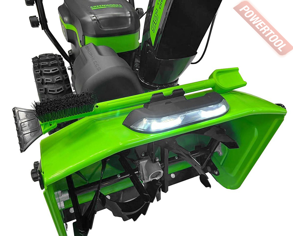 Снегоуборщик колесный самоходный аккумуляторный GREENWORKS GD82ST56 - первый самоходный (среди снегоуборщиков Greenworks) аккумуляторный профессиональный двухступенчатый снегоуборщик с шириной захвата 61 см и впечатляющей дальностью выброса 15 м! Полноценная альтернатива бензиновому инструменту. Мощность сравнимая с бензиновым до 7 л.с./ 212 см3. Литиево-ионный аккумулятор 82 В обеспечивает длительную непрерывную работу. Использование аккумулятора имеет много преимуществ в сравнении с бензиновым двигателем. Вместо шума, вибрации и выхлопных газов вы получаете возможность работать в тишине. Работа аккумулятора снижает вибрации до 80 процентов по сравнению с бензиновым двигателем. Технология аккумуляторного привода гарантирует снижение уровня шума до 50 процентов. Это позволяет использовать оборудование в таких чувствительных к шуму местах как школы, больницы, жилые районы и для ночных работ. Нет необходимости использовать шнур питания. Управление аккумуляторным снегоуборщиком чрезвычайно просто, вы сможете справиться с любой задачей комфортно и уверенно, и для этого вам потребуется всего одно нажатие кнопки.