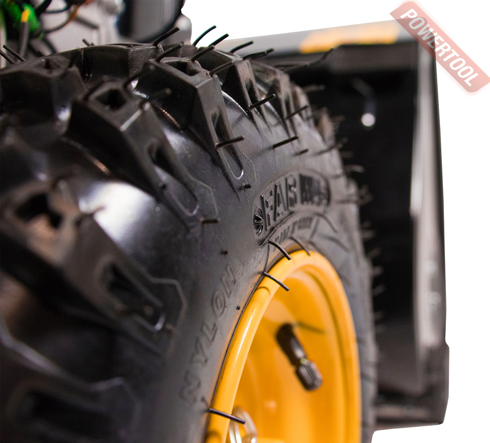 - Резиновые шины с глубоким рисунком протектора обеспечивают оптимальную проходимость и высокую маневренность даже в сложных погодных условиях.