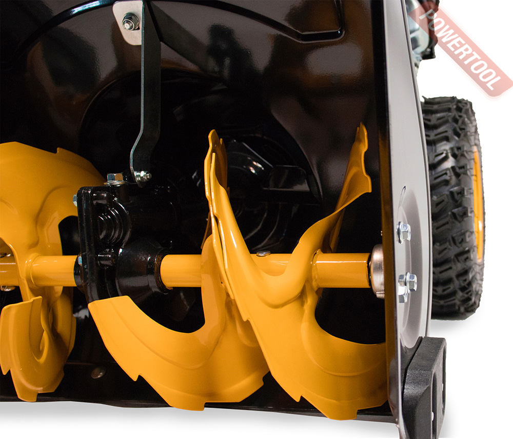 - Шнек выполнен из сверхпрочного цельного металлического листа. Такой шнек обеспечивает быструю и качественную уборку, при этом долгое время не изнашивается. Поскольку на шнеке есть специальные зубцы, такая снегоуборочная машина легко и быстро справляется не только со свежевыпавшим снегом, но и с тем, который хорошо утрамбовался и даже покрылся коркой.