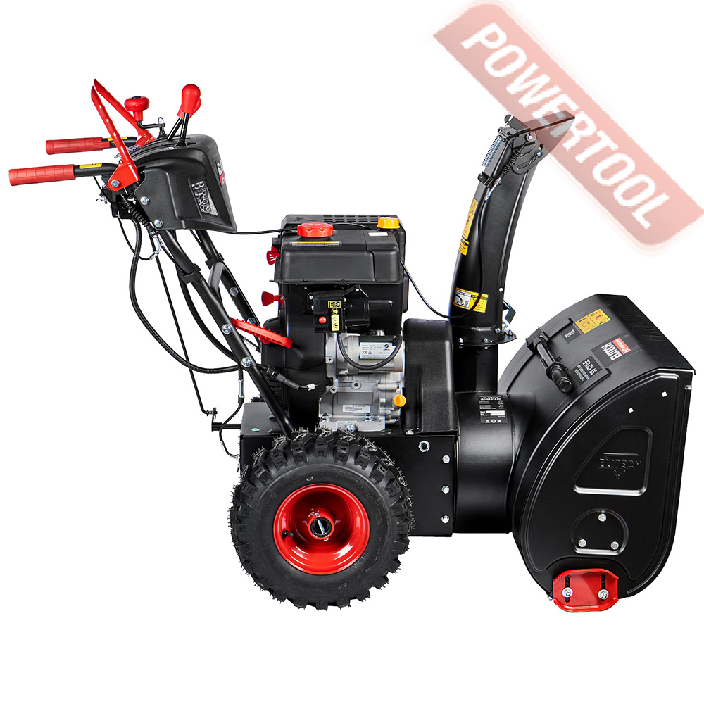 Снегоуборщик колесный самоходный ELITECH HD ST 1271LE с двух ступенчатой системой выброса снега. Используется для уборки снега с дорожек, тротуаров и других участков, с выбросом снега в сторону. Снегоуборочная машина оснащена бензиновым 4-тактным двигателем OHV коммерческого уровня, с ручным запуском и запуском от электросети. Спереди снегоуборочной машины расположен ковш с вращающимся шнегом для забора снега и последующего его выброса в сторону через разгрузочный желоб. Направление выброса снега регулируется на 190 градусов. Модель оснащена LED фарами, что облегчает её использование при эксплуатации в темное время. Эргономичная приборная панель. Подогрев рукояток.