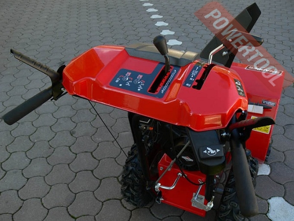 - Легкий запуск снегоуборочной машины обеспечивается благодаря наличию электрического стартера, работающего от сети 230 В. Таким образом, для того чтобы воспользоваться стартером, нужно просто подключиться к электрической розетке и нажать соответствующую кнопку. Теплый двигатель вы можете легко завести пусковой рукояткой.