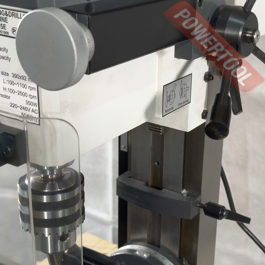- Рукоять опускания шпинделя имеет пластиковый наконечник, который обеспечивает надежный хват и удобство работы.
