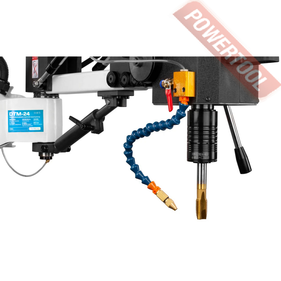Сверлильно-резьбонарезной манипулятор HEDEN DTM-24 способен высверливать отверстие диаметром 3-16 мм и нарезать резьбу до М24. Два назначения повышают эффективность производства и сокращают трудовые затраты. Стабильный и качественный результат на различных материалах: сталь, железо, медь, алюминий, пластик. Легкое перемещение обеспечивает двойная консольная головка, вращающаяся на 360 градусов с вертикальным и боковым отводом. Предусмотрена автоматическая система подачи СОЖ, которая препятствует износу инструмента.