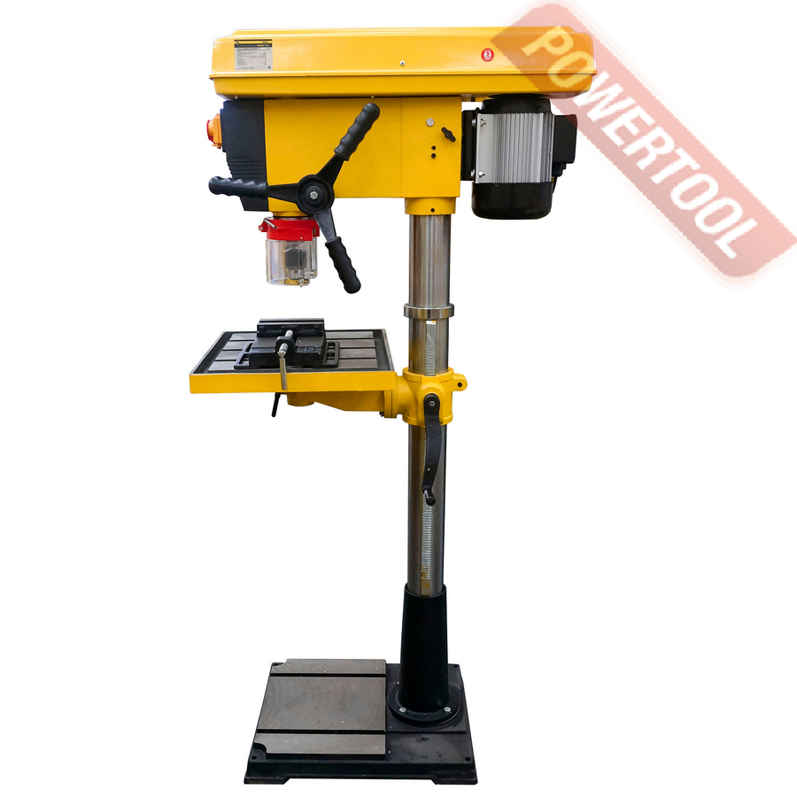 Сверлильный станок, 1500 Вт, 220 В, max диаметр сверления 16 мм, частота вращения шпинделя 150-2700 об/мин, 12 скоростей, ступенчатая регулировка оборотов, конус шпинделя КМ-3, посадочное сверлильного патрона B16, диапазон хвостовиков для патрона 3-16 мм, ход пиноли шпинделя 120 мм, размер основания 580х450 мм, размер стола 425х475 мм, наклон стола влево/вправо 45/45 градусов, 3 Т-образных паза, вес 140 кг, в комплекте патрон ключевой В16 3-16 мм, оправка КМ-3/В16, защитный экран, набор инструментов, тиски.
