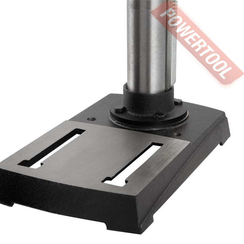 Механизм подачи пиноли имеет лимб (круговую шкалу с миллиметровой разметкой), совмещенный с ограничителем глубины сверления. Полный ход сверла производится за один оборот рукоятки. Рабочий стол регулируется по высоте и по углу наклона, а также поворачивается вместе с кронштейном вокруг колонны. Станок идеален для взыскательных пользователей-любителей или в качестве универсального вспомогательного оборудования для профессионалов.