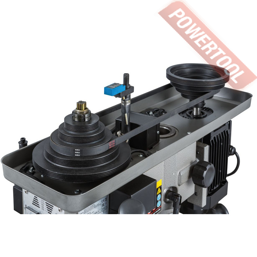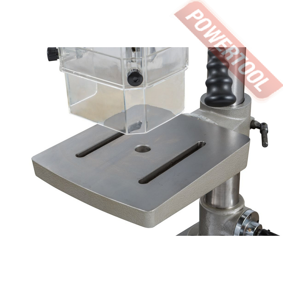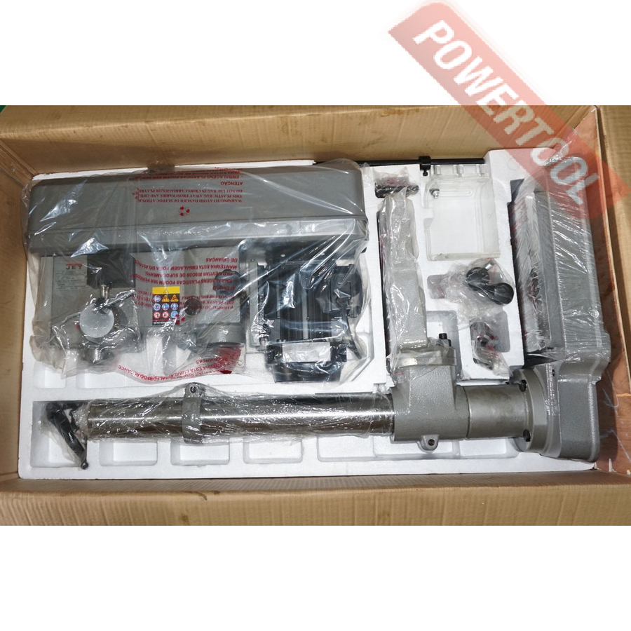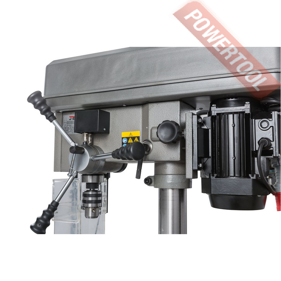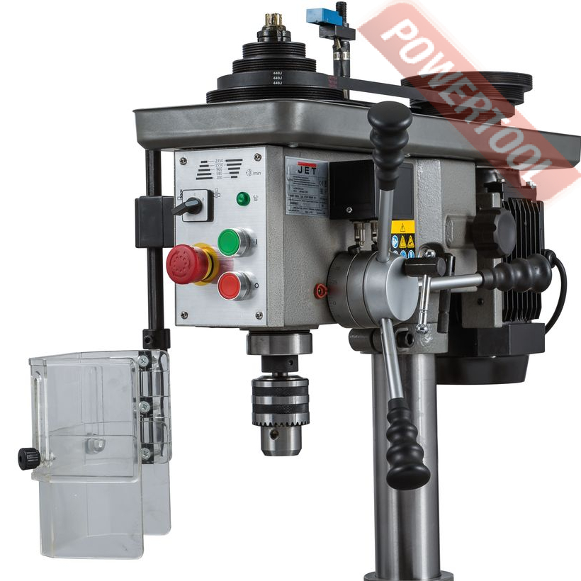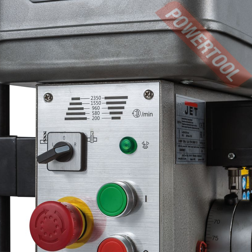 Сверлильный станок по металлу JET IDTP-16 возглавил новую линейку станков JET с возможностью нарезать резьбу. Данный станок производится в Китае, что позволяет снизить стоимость изготовления, а это непосредственно влияет на цену станка в России. Станок оснащен мощным двигателем и способен в режиме долгих нагрузок нарезать резьбу до М12. На станке установлен асинхронный двигатель, на который установлен шкив с 5-я ручьями, перекидывая ремень по ручьям шкива. Данное решение в тандеме с легкой натяжкой двигателя и надежной фиксацией, позволяет сохранить и передать хороший момент на шпинделе. Основание станка отлито из серого чугуна, станок устанавливается на верстак или стол, подстолье и фиксируется болтами. Надежная фиксация позволяет уменьшить вибрации. В основание вставляется толстостенная труба, на которую непосредственно крепится голова сверлильного станка. В управление станок достаточно прост.