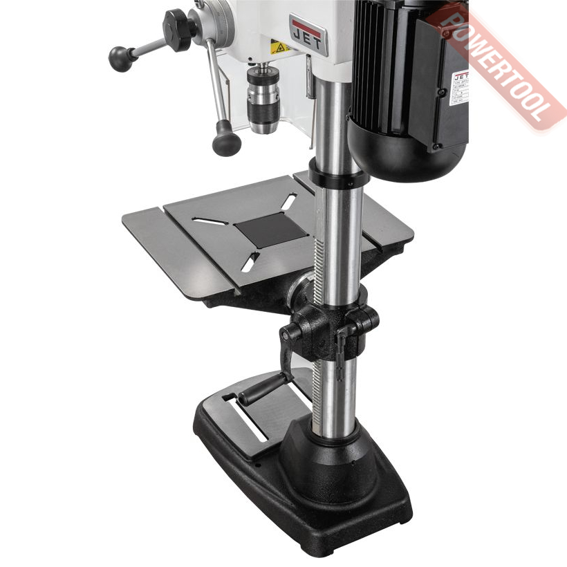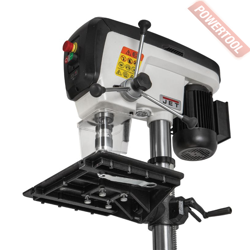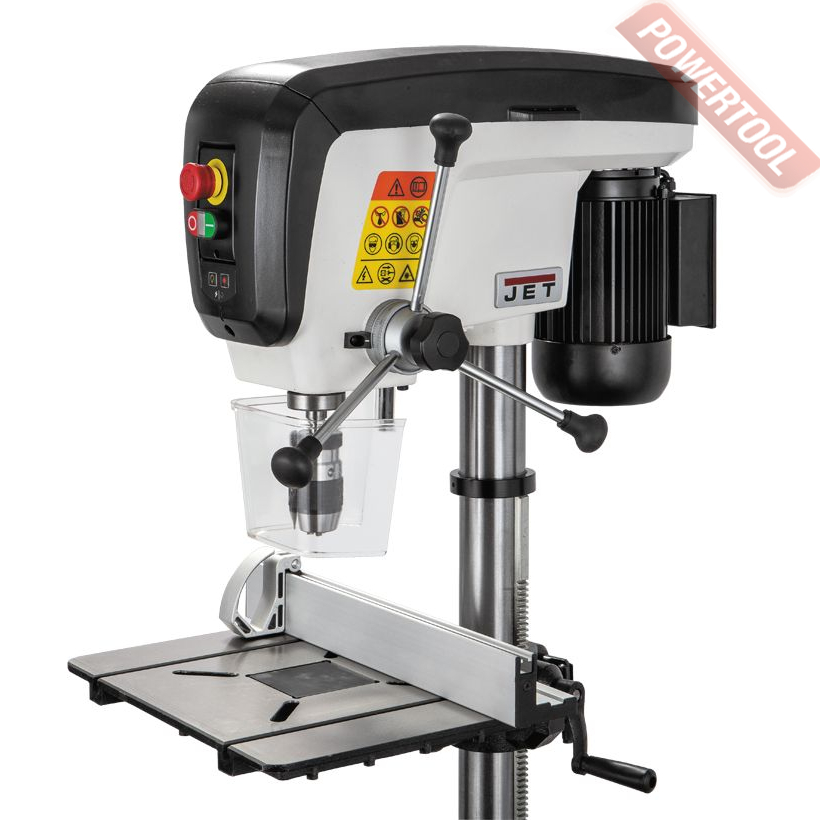 Сверлильный станок по дереву JET JDP-15B 230В - настольный вариант профессионального сверлильного станка для применения в столярной мастерской. Его рабочие параметры оптимизированы для решения задач, возникающих при деревообработке: увеличен ход пиноли шпинделя, повышена максимальная скорость вращения, рабочий стол увеличенной площади имеет прорези для крепления заготовки с помощью струбцин и большое отверстие в центре для сменной (жертвенной) вставки. Важная особенность – наличие четырех регулировочных винтов под основанием, что позволяет использовать вставки, сделанные из материала разной толщины. В остальном конструкция аналогична традиционным моделям, ориентированным на сверление металла, и не уступит им с точки зрения жесткости, массивности и запаса прочности.