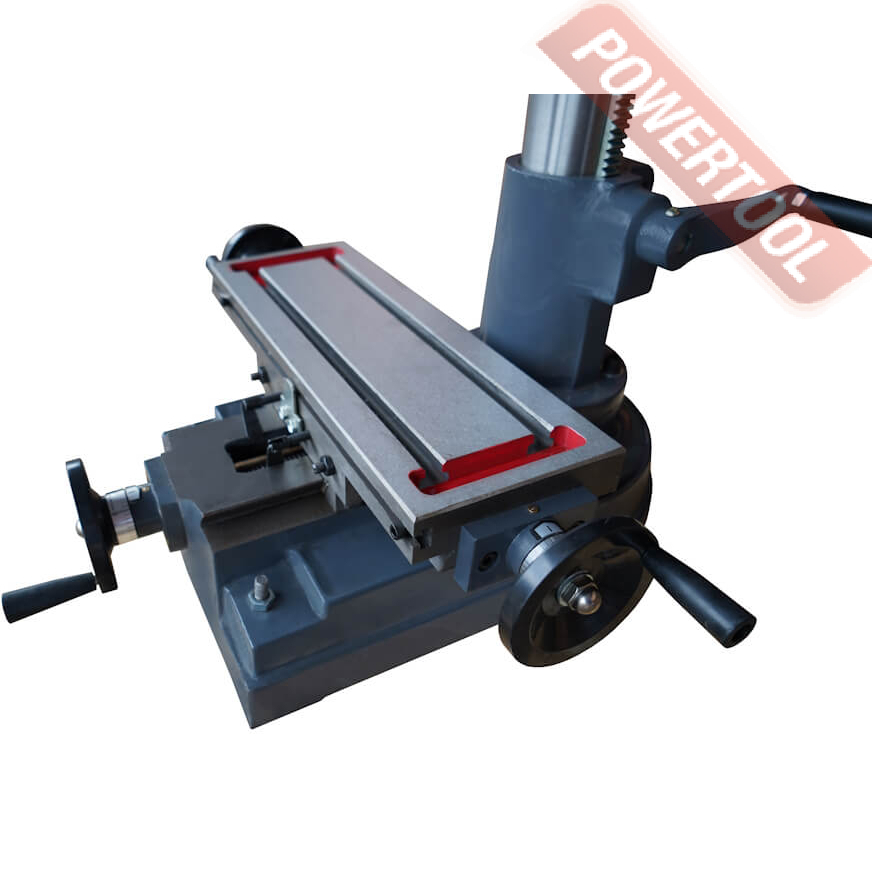 Для удобства позиционирования заготовки станок Metal Master M25 KC оснащен координатным столом размером 420x152 мм, ход стола составляет 230х120 мм. Также, на столе есть два Т-образных паза размером (12х2х82), с помощью которых вы можете установить дополнительную оснастку для крепления заготовок. Перемещение стола по осям X\Y можно зафиксировать с помощью специальных винтов. Цена деления лимба по оси X\Y составляет 0,1 мм.