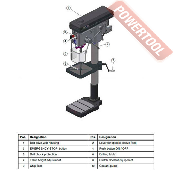• При снятом сверлильном столе, поверхность основания станка может быть использована для установки особо высоких заготовок.