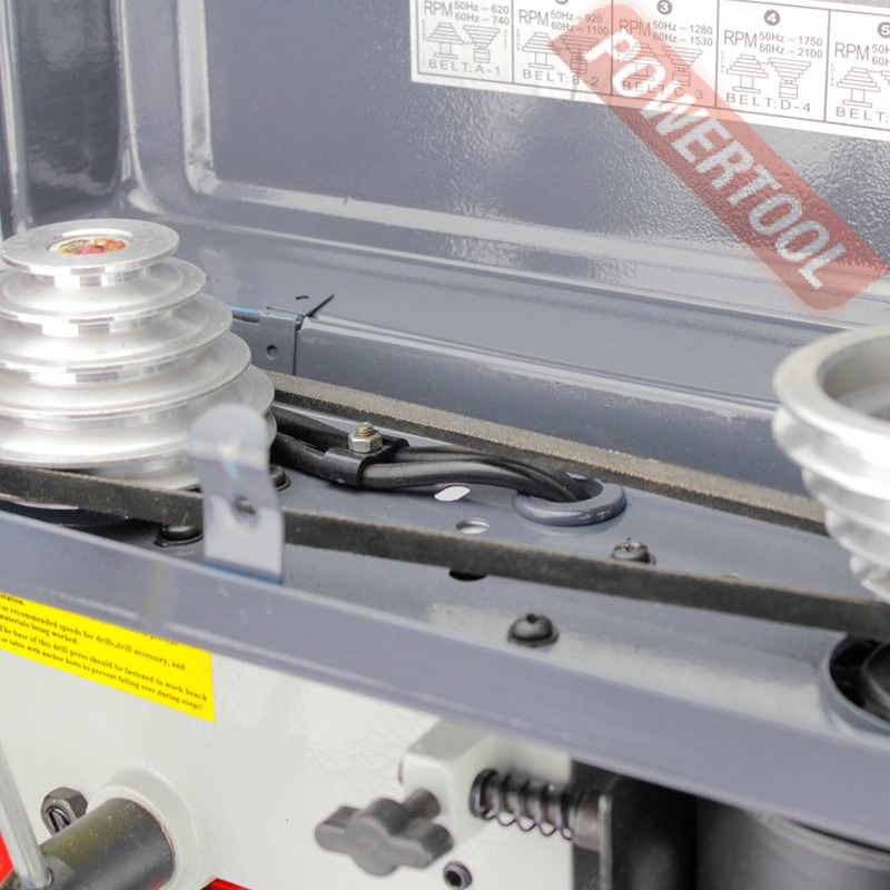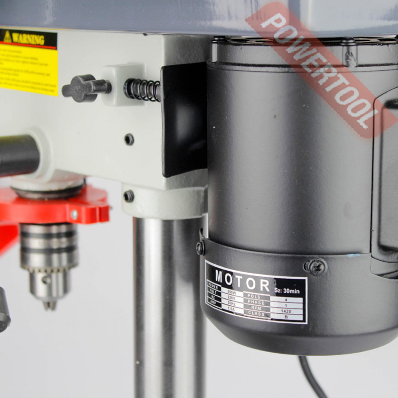 Сверлильный станок, 350 Вт, 220 В, max диаметр сверления 13 мм, частота вращения шпинделя 620-2620 об/мин, 5 передач, ступенчатая регулировка оборотов, конус шпинделя КМ-2, посадочное сверлильного патрона B16, диапазон хвостовиков для патрона 1,5-13 мм, ход пиноли шпинделя 50 мм, шпиндель-стол 220 мм, шпиндель-основание 300 мм, диаметр стойки 46 мм, размер основания 290х190 мм, размер стола 160х160 мм, наклон стола влево/вправо 45/45 градусов, угол поворота стола 180 градусов, габариты 320х170х530 мм, вес 16 кг, в комплекте патрон В16 1,5-13 мм, оправка КМ-2/В16, защитный экран, набор инструментов.