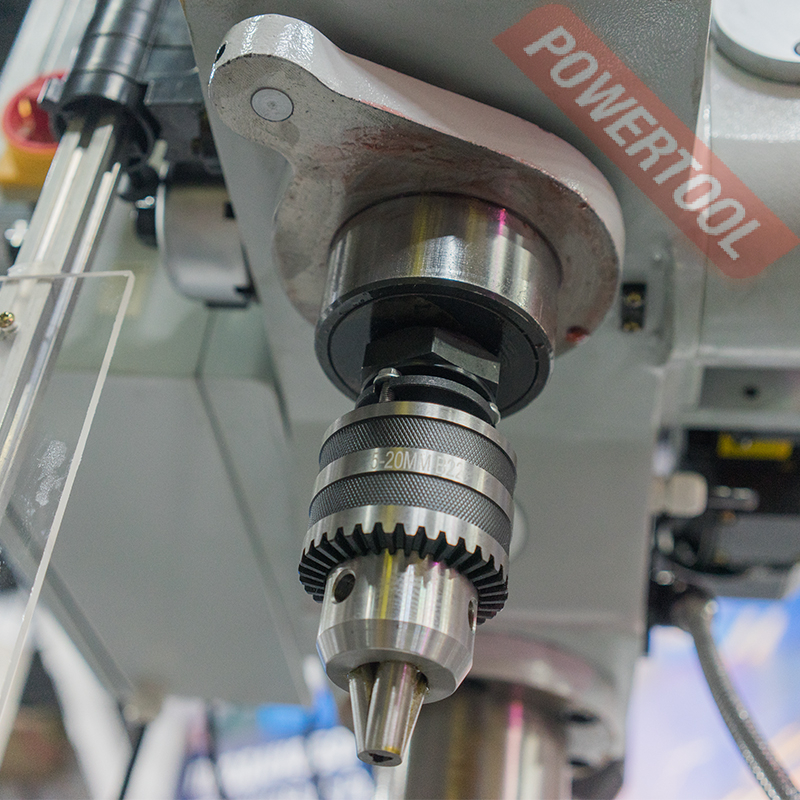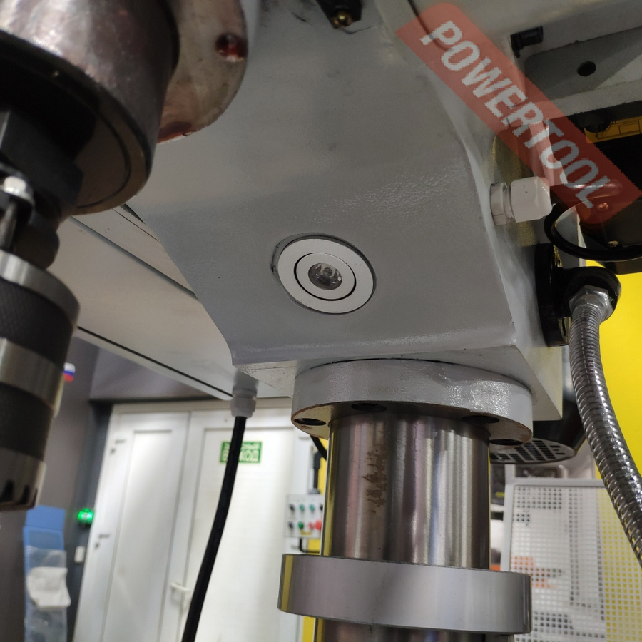 Сверлильный станок, 1500 Вт, 380 В, max диаметр сверления 32 мм, max нарезаемая резьба M20, частота вращения шпинделя 320-1820 об/мин, 5 скоростей, ступенчатая регулировка оборотов, автоподача пиноли с диапазоном 0-110 мм/об, конус шпинделя КМ-3, посадочное сверлильного патрона B22, диапазон хвостовиков для патрона 5-20 мм, ход пиноли шпинделя 150 мм, вылет шпинделя 265 мм, шпиндель-стол 815 мм, шпиндель-основание 1240 мм, диаметр стойки 100 мм, размер основания 380х310 мм, размер стола 330х330 мм, размер Т-образного паза 14 мм, подсветка рабочей зоны, габариты 940х570х1950 мм, вес 320 кг, в комплекте патрон ключевой B22 5-20 мм, оправка КМ-3/B22, втулка переходная КМ-3/КМ-2, защитный экран, набор инструментов, LED лампа освещения, система СОЖ.