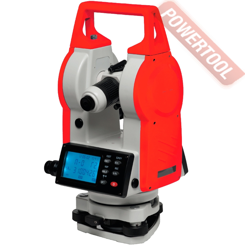- Большой матричный двухстрочный жидкокристаллический дисплей может отображать вертикальный и горизонтальный углы одновременно, а встроенная система подсветки позволяет работать в условиях с пониженной освещенностью. Для точной установки теодолита есть лазерный отвес