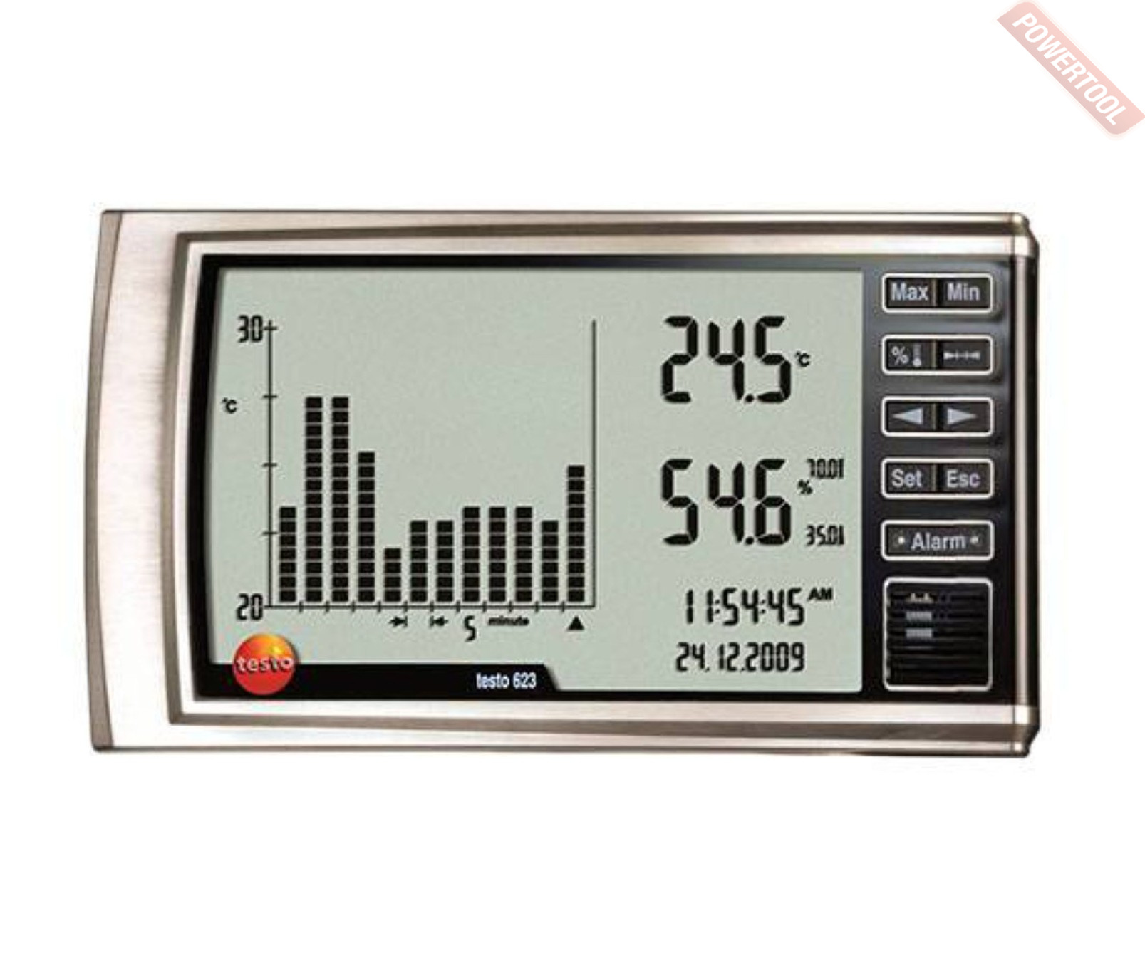 Термогигрометр с функцией истории измерений TESTO 623 - предназначен для измерения температуры и влажности, вычисления точки росы, показывает текущие и сохраненные в памяти, измеренные в прошлом, значения на большом четком дисплее.