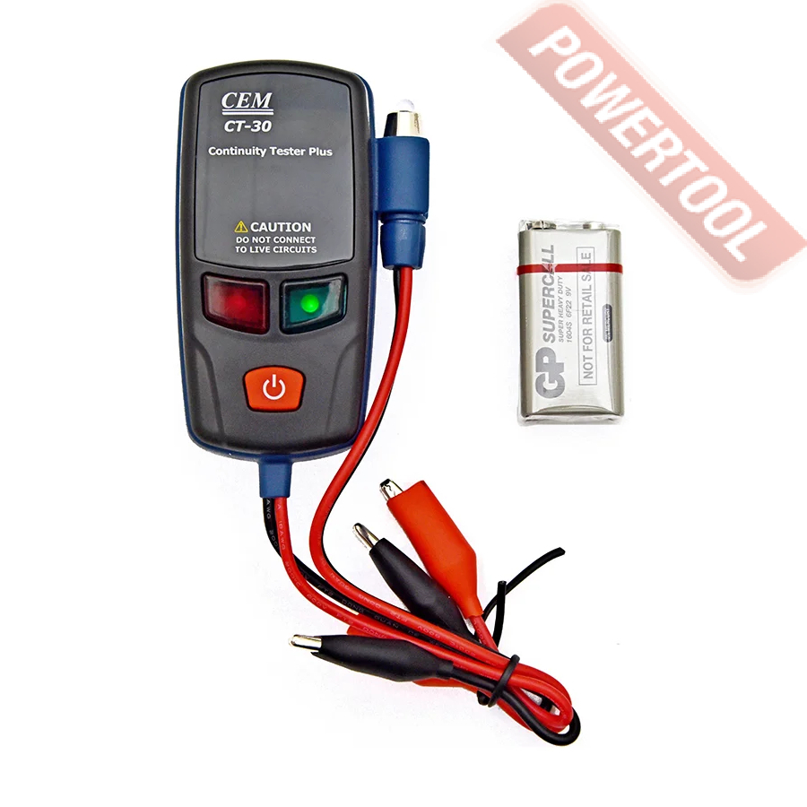 Тестер для проверки на разрыв CEM CT-30 представляет собой портативный сигнализатор разрывов в электропроводке, с помощью которого можно не только определить целостность цепи, но и провести идентификацию проводов в многожильном кабеле.
