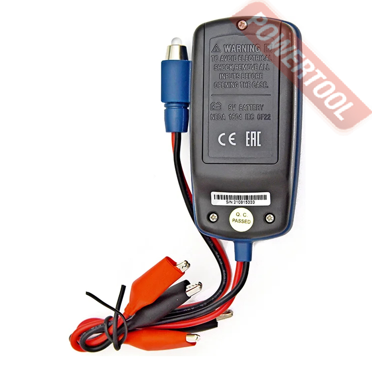 Тестер для проверки на разрыв, расстояние между проводами до 3 м, проверка целостности цепи, световая/звуковая индикация, питание от 1 батарейки 9В тип Крона, размер ДхШхВ 96х47х33 мм, вес 0,135 кг.