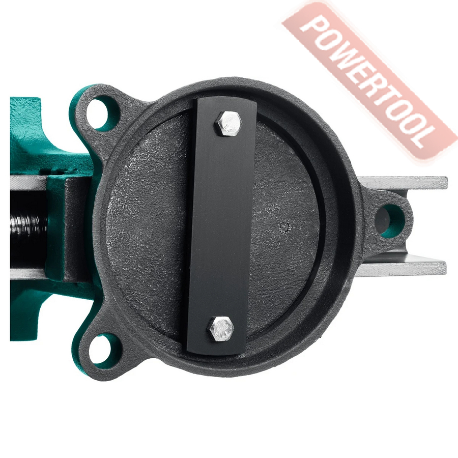 Тиски слесарные поворотные, ширина губок 200 мм, рабочий ход 200 мм, глубина зева 87 мм, наковальня, усилие зажима 6000 кг, функция поворота 360 градусов, размер ДхШхВ 505х205х200 мм, вес 17,3 кг.