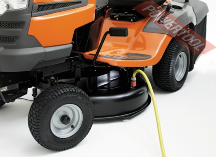 • Одноцилиндровый бензиновый 4-х тактный двигатель HUSQVARNA Intek 3125 объёмом 344 куб.см и мощностью 8,5 л.с. Автоматический выключатель под сиденьем. Трактор оснащен установленным под сиденьем выключателем. Если водитель покинет сиденье, двигатель и режущая дека автоматически выключатся. Индикатор заполнения травосборника. Сигнал подсказывает, что пора опустошить травосборник. Легкодоступная горловина топливного бака. Для заполнения топливного бака не требуется открытия капота. Счетчик моточасов с напоминанием об обслуживании. Указывает на необходимость технического обслуживания.
