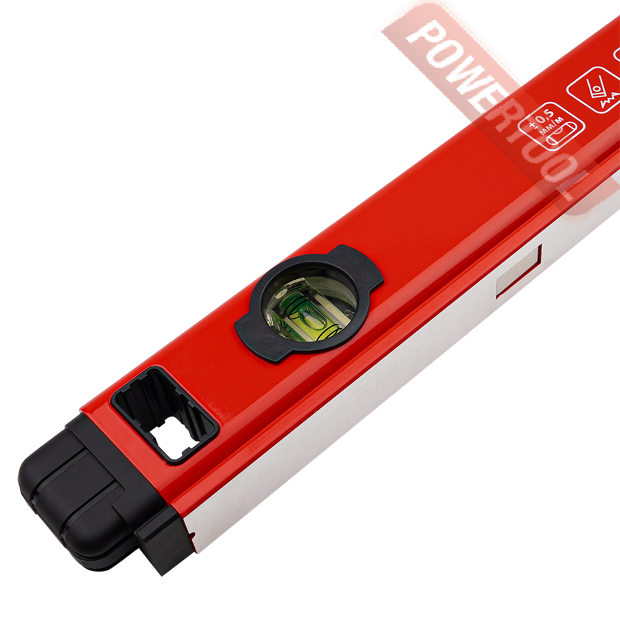 Уровень изготовлен из высокопрочного алюминиевого профиля с толщиной стенки 1,2 мм. Это обеспечивает высокую устойчивость к деформации и механическим повреждениям, даже при интенсивном использовании. Продольные выступы на нижней части профиля добавляют жесткости конструкции, гарантируя неизменность формы и точности измерений на протяжении всего срока службы. Прочный корпус выдержит случайные падения, которые неизбежны на строительных объектах.