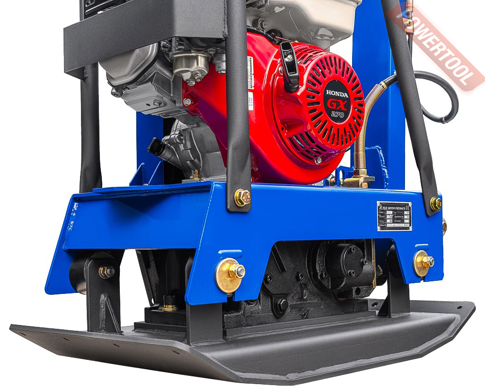 - Усиленная рама. Защитная рама над двигателем, для предотвращения повреждений, имеет специальный упор для поднятия виброплиты краном.