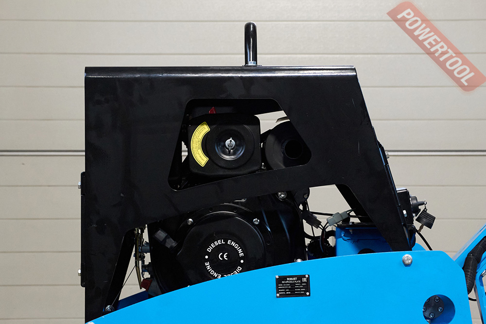 - Сбалансированное сочетание веса плиты и мощности двигателя даёт оптимальную силу уплотнения 40 кН.