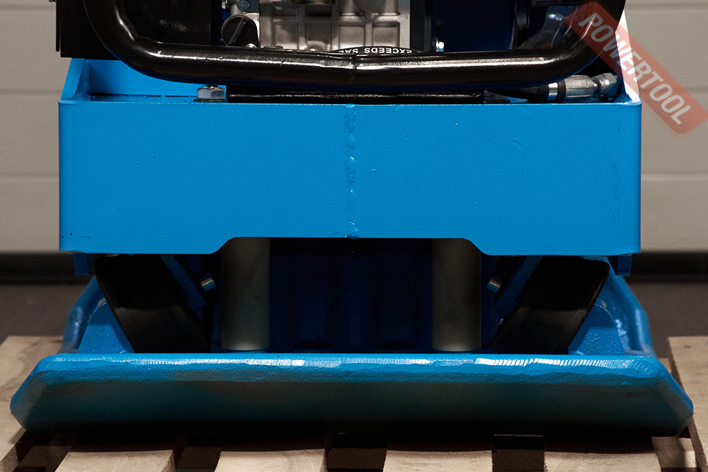 - Литая рабочая подошва плиты способна принимать повышенные нагрузки и эффективно передаёт вибрацию от эксцентрика.