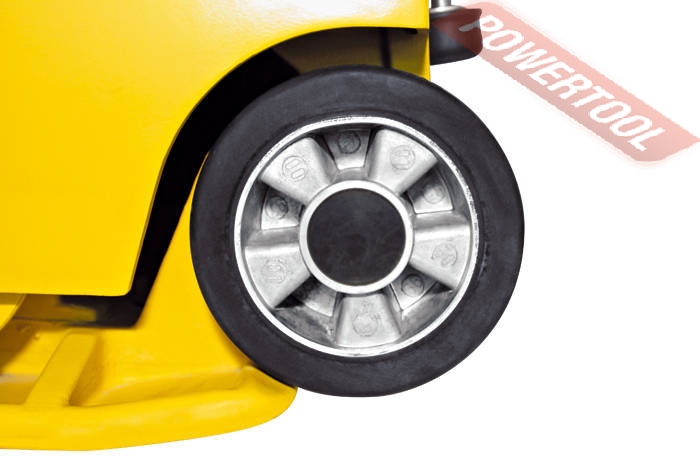 • Для удобства перемещения по строительной площадке виброплита имеет встроенные транспортировочные колеса, которые занимают мало места. Они уникальны. Достаточно просто поднять направляющую рукоятку, закрепить её и можно перемещать плиту.