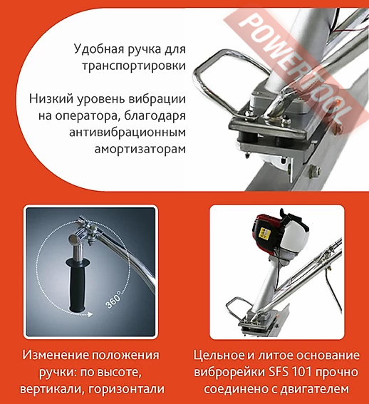 - Дополнительная рукоятка в основание виброрейки для удобства перемещения.