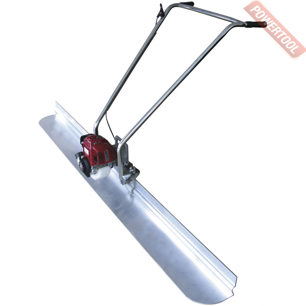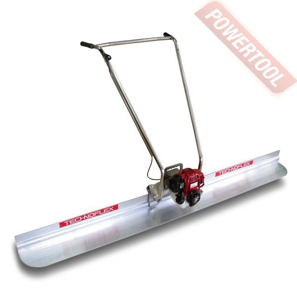 Виброрейка для бетона бензиновая TECHNOFLEX PGH предназначена для уплотнения и выравнивания бетонных смесей при бетонировании дорог, полов, площадок в промышленном и гражданском строительстве. Виброрейки позволяют делать стяжку на бетонных смесях малой влажности (до 20 процентов воды). Уложить такой раствор традиционным способом достаточно трудно, смесь малоподвижна и плохо трамбуется. Под воздействием вибрации рейка сокращает до минимума пористость бетона и позволяет максимально равномерно распределить бетонную смесь. Виброрейка обеспечивает одинаково отличное вибрирование по всей длине лезвия. Главное: можно уложить в 4 раза больше бетона и более аккуратно. Плавающая виброрейка работает по направляющим или без них. Движение рейки обеспечивается за счёт того, что оператор тащит её за рукоятки на себя, а специальный профиль позволяет ей плыть по раствору даже без направляющих рельс-форм. Состоит из бензинового двигателя, топливного бака, алюминиевого профиля разной длины, груза-эксцентрика, расположенного в центре профиля и рукоятки управления. Бензиновый двигатель через приводной вал вращает груз-эксцентрик, в результате чего создаются вибрации.