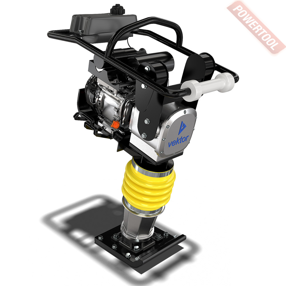 Вибротрамбовка дизельная, вес 82 кг, размер подошвы 340х285 мм, усилие уплотнения 15,7 кН, глубина уплотнения 30-50 см, 650-700 уд/мин, амплитуда хода 50-80 мм, дизельный двигатель YANMAR L48N объемом 219 куб.см и мощностью 4,7 л.с., топливный бак 3,3 л, габариты ДхШхВ 1010х410х740 мм.
