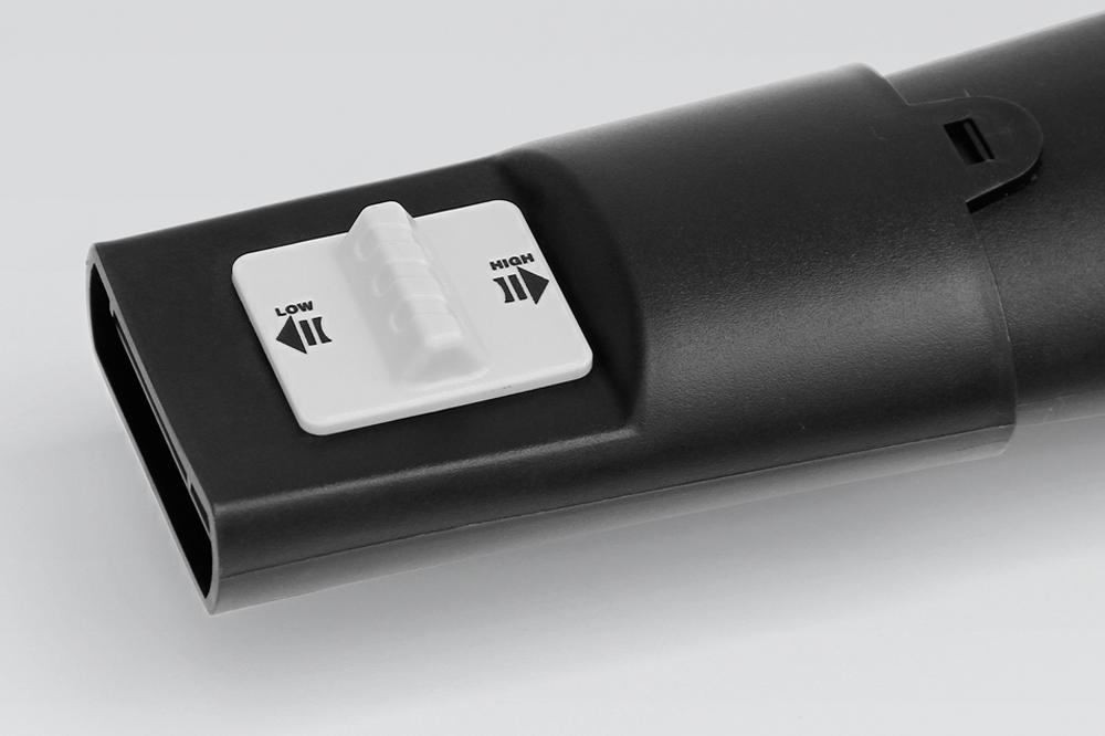 • Регулировка скорости и интенсивности воздушного потока. При помощи заслонки на патрубке Вы можете отрегулировать интенсивность воздушного потока, а удобный переключатель на рукоятке позволяет выбрать одну из 6 скоростей (до 241 км/ч).