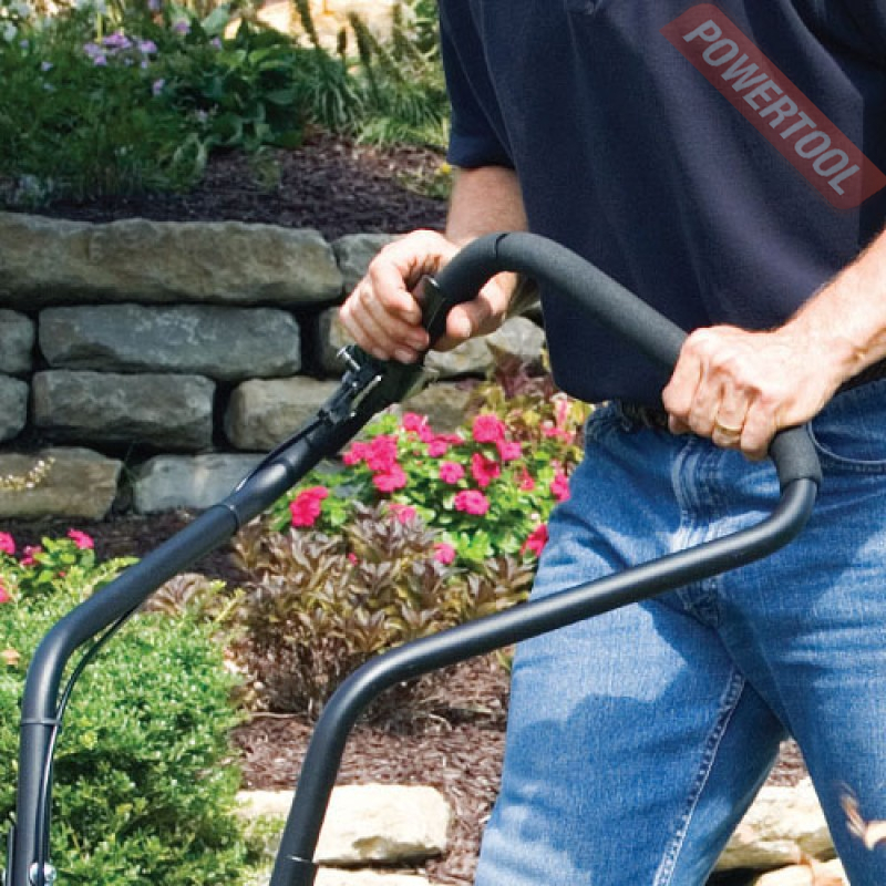 - Пневматические колеса улучшают сцепление и проходимость, а так же защищают газон от повреждений протектором.
