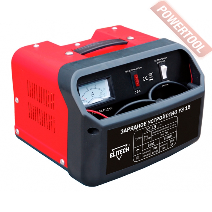 Зарядное устройство автомобильное ELITECH УЗ 15 Предназначены для зарядки севших аккумуляторных батарей от автомобилей, мотоциклов, генераторов и другого оборудования оснащенного аккумуляторами. Оптимальны для гаражного, домашнего и сервисного применения.