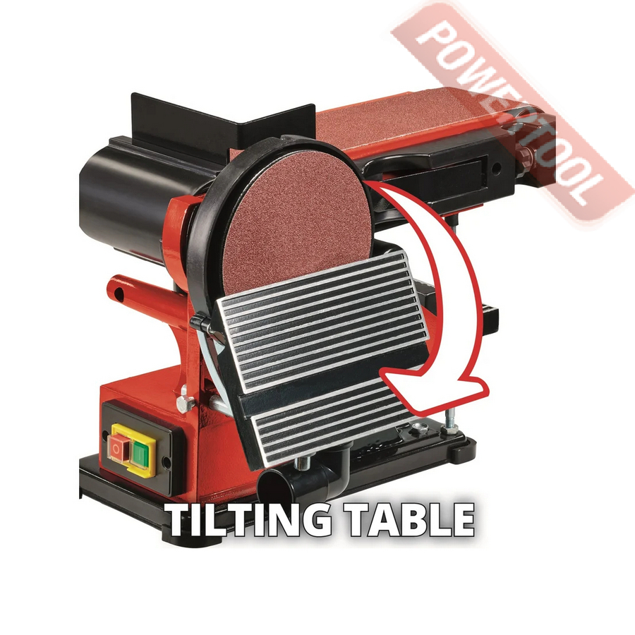 Заточной станок комбинированный, мощность 380 Вт, напряжение 220 В, шлифкруг 150 мм, крепление диска на липучку, число оборотов 1500 об/мин, шлифлента 100х914 мм, возможность подключения к пылесосу, наклонно-поворотный стол, габариты ДхШхВ 503х312х269 мм, вес 13,25 кг, шлифовальный круг 150 мм зернистость К80, шлифлента 100х914 мм зернистость Р80.